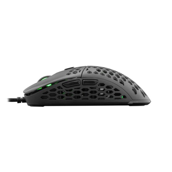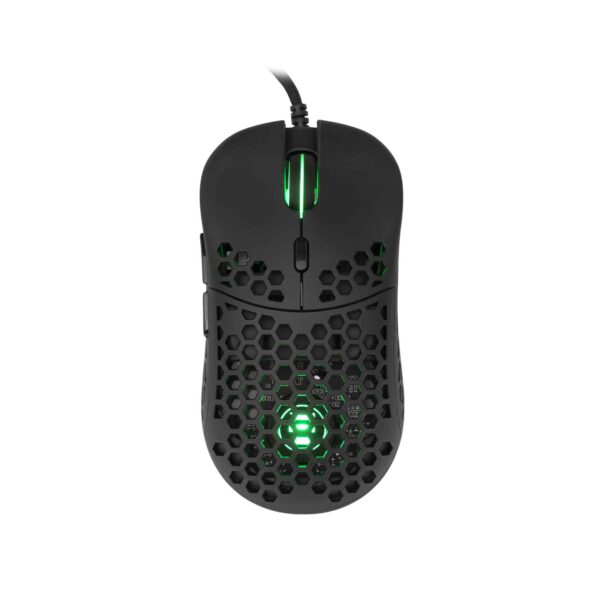 En extremt lätt (60 g) symmetrisk mus med bikakekonstruktion och RGB-belysning. Den drivs av en imponerande optisk sensor Pixart PMW3389 som garanterar precision, hastighet och slutligen resultat.