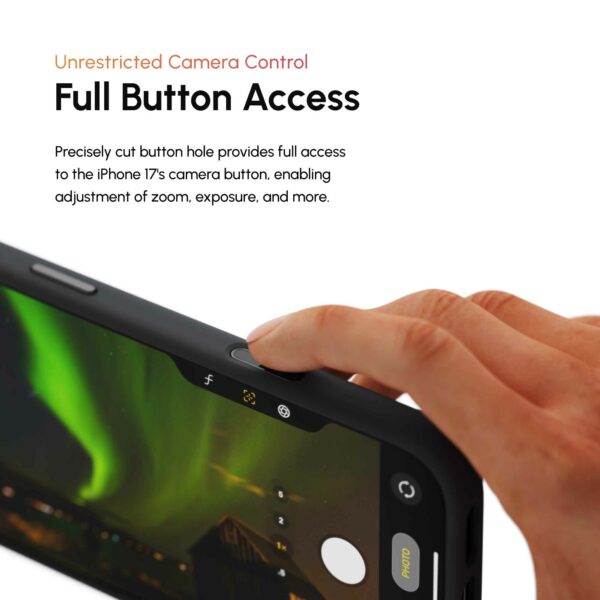 Med en exakt skuren öppning får du full åtkomst till iPhone 16:s kameraknapp. Detta gör att du kan fånga ögonblick med precision och enkelhet. S.Mount-systemet säkerställer dessutom sömlös kontroll vid varje tagning.