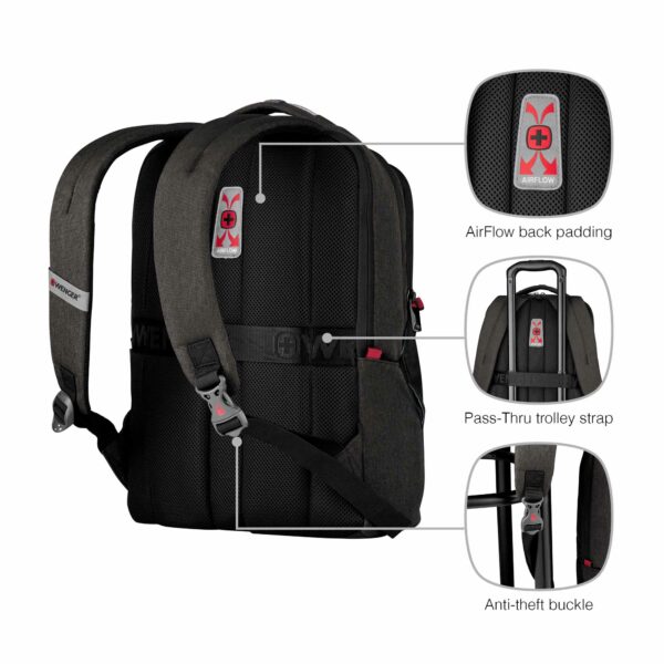 Optimerad prestanda och en praktisk estetik smälter samman och skapar denna oumbärliga ryggsäck för den upptagna yrkesmannen. Den är tillräckligt sofistikerad för styrelserummet, men ändå tillräckligt tålig för daglig användning, och har vadderade fack för din surfplatta och bärbara dator. Den inre SmartOrg-panelen håller ordning på dina viktigaste saker, och unika dolda sidfickor förvarar din utrustning säkert utan att ta upp extra plats. Vattentåliga dragkedjor och ett säkerhetsspänne av typen S/R gör jobbet.