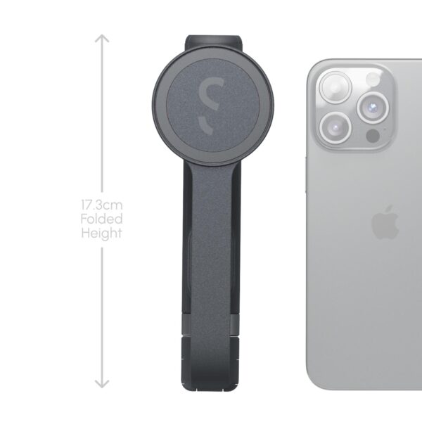 Eftersom den har en utdragbar höjd på upp till 75 cm, så är den den perfekta armförlängningen. Dess vikbara design resulterar i att den är lika kompakt som en iPhone Pro Max.
