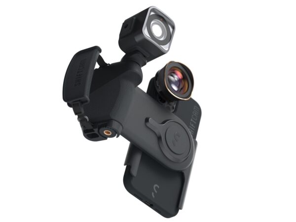 EXPANDERA MED TILLBEHÖR fungerar med ShiftCam ProLenses (objektivfäste krävs), och har ett blixtskofäste och stativfäste för ytterligare flexibilitet och funktionalitet för att lägga till LED-lampor, mikrofoner och mer.