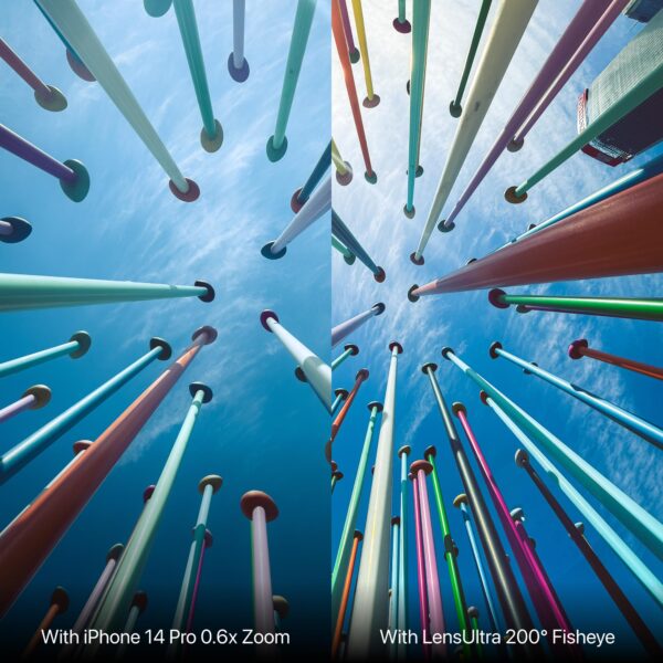 Även om vidvinkelkameran på din mobila enhet är bekväm, kan den kännas begränsande i vissa scenarier. Till exempel resulterar det inbyggda vidvinkelobjektivet ofta i upplösningsförlust. Därför introducerar vi LensUltra 200° Fisheye-objektivet, som erbjuder en vidvinkelvy med en fängslande cirkulär effekt. Med detta objektiv kan du ta bilder av vänner, lyfta fram sevärdheter på semestern eller fånga omgivande miljöer med en kreativ twist.