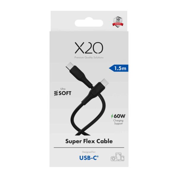 X2O Soft-Touch Silicone Series, är en trassel resistent USB-C till C kabel med kappa av mjukt silikon. Kablarna erbjuder USB2.0-standard och tack vare hållbar trådkonstruktion, gjutna höljen och nickelpläterade kontakter är resultatet en tålig och lätthanterlig kabel.