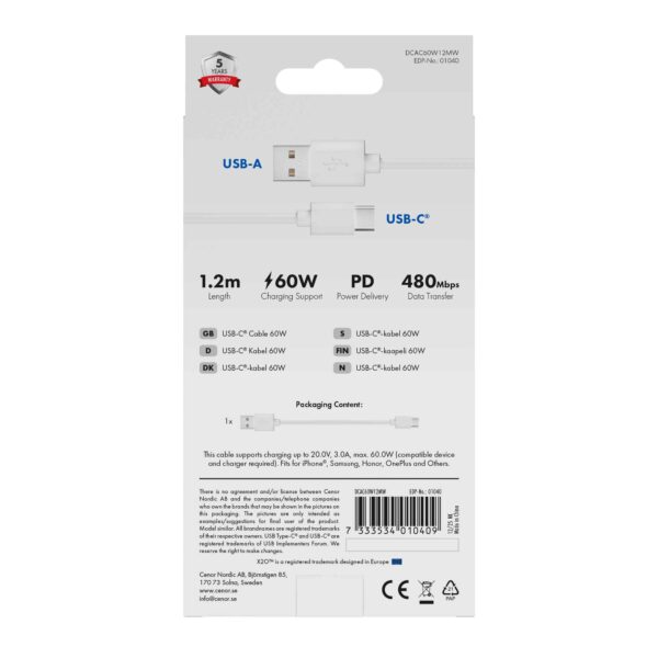 X2O Premium Basic-serien erbjuder högsta kvalitet och avancerade specifikationer för vardagsbruk. Den finns i två modeller: USB-A till C och USB-C till C, och i tre olika längder: 0,5 m – 1,2 m – 2,0 m.