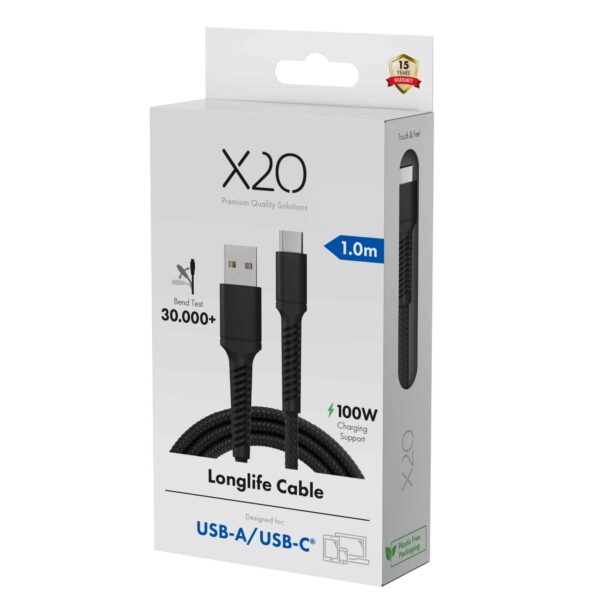 Kablarna har USB2.0-standard och finns som USB-A -> USB-C (60W) och USB-C -> USB-C (100W) i 4 olika längder: 0,5m, 1m, 2m och 3m.