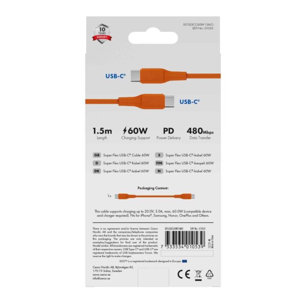 X2O Soft-Touch Silicone Series, är en trassel resistent USB-C till C kabel med kappa av mjukt silikon. Kablarna erbjuder USB2.0-standard och tack vare hållbar trådkonstruktion, gjutna höljen och nickelpläterade kontakter är resultatet en tålig och lätthanterlig kabel.
