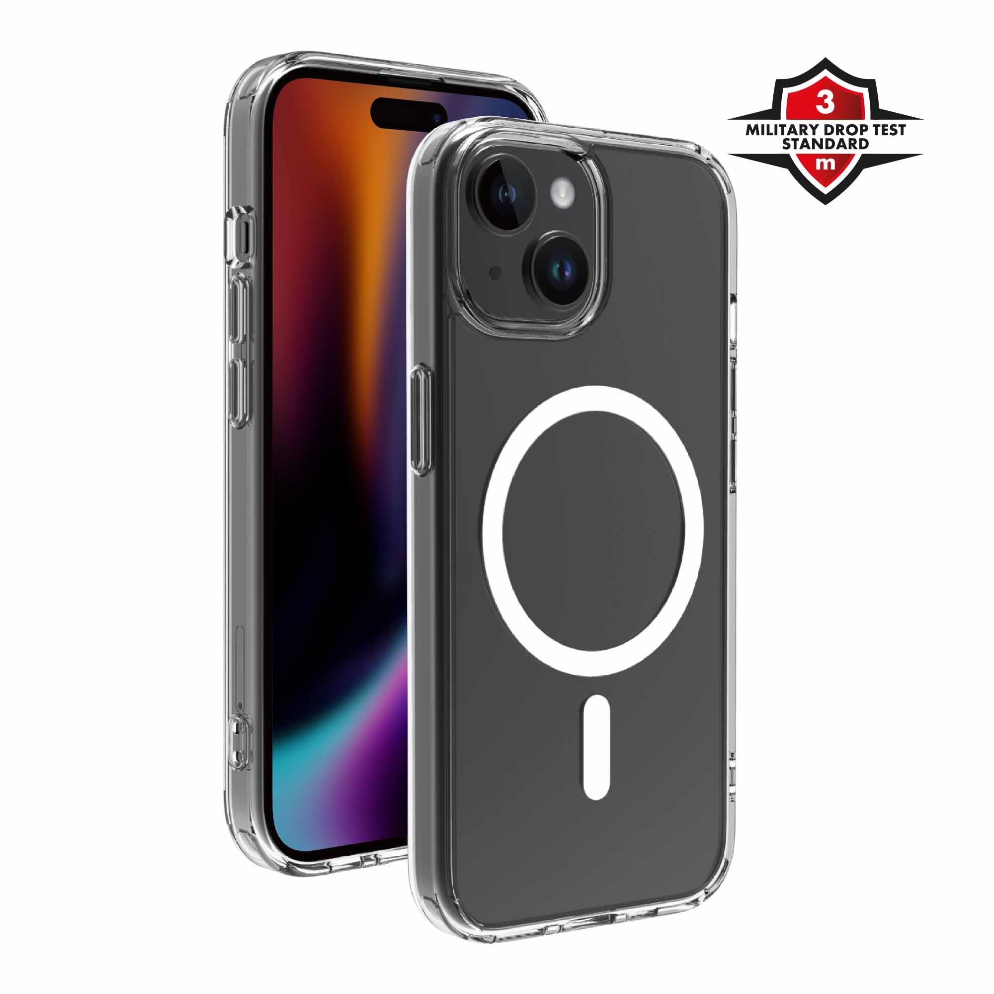 MagClear Cover för optimalt skydd av din smartphone. Helt transparent och hållbart MagSafe®-kompatibelt skal med 3,0 m falltestcertifiering.