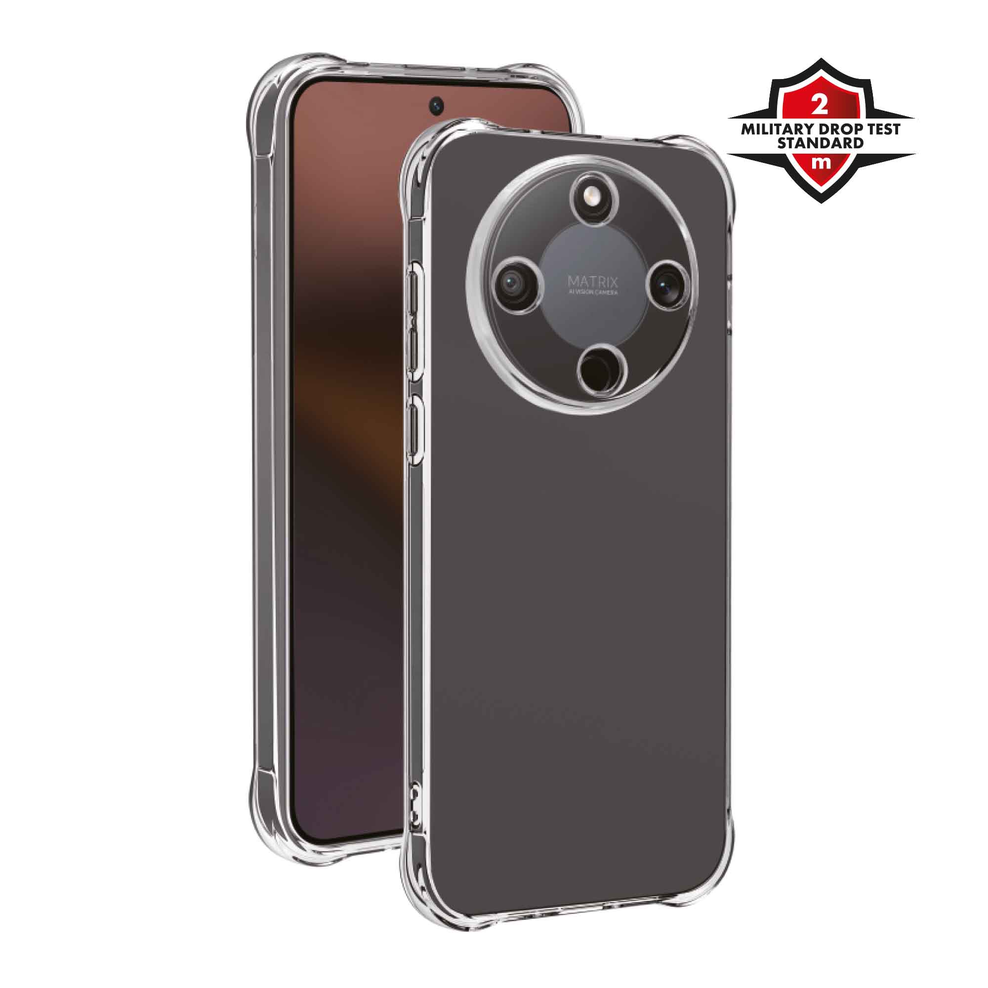 Helt transparent och hållbart fodral med 1,5 m falltestcertifiering