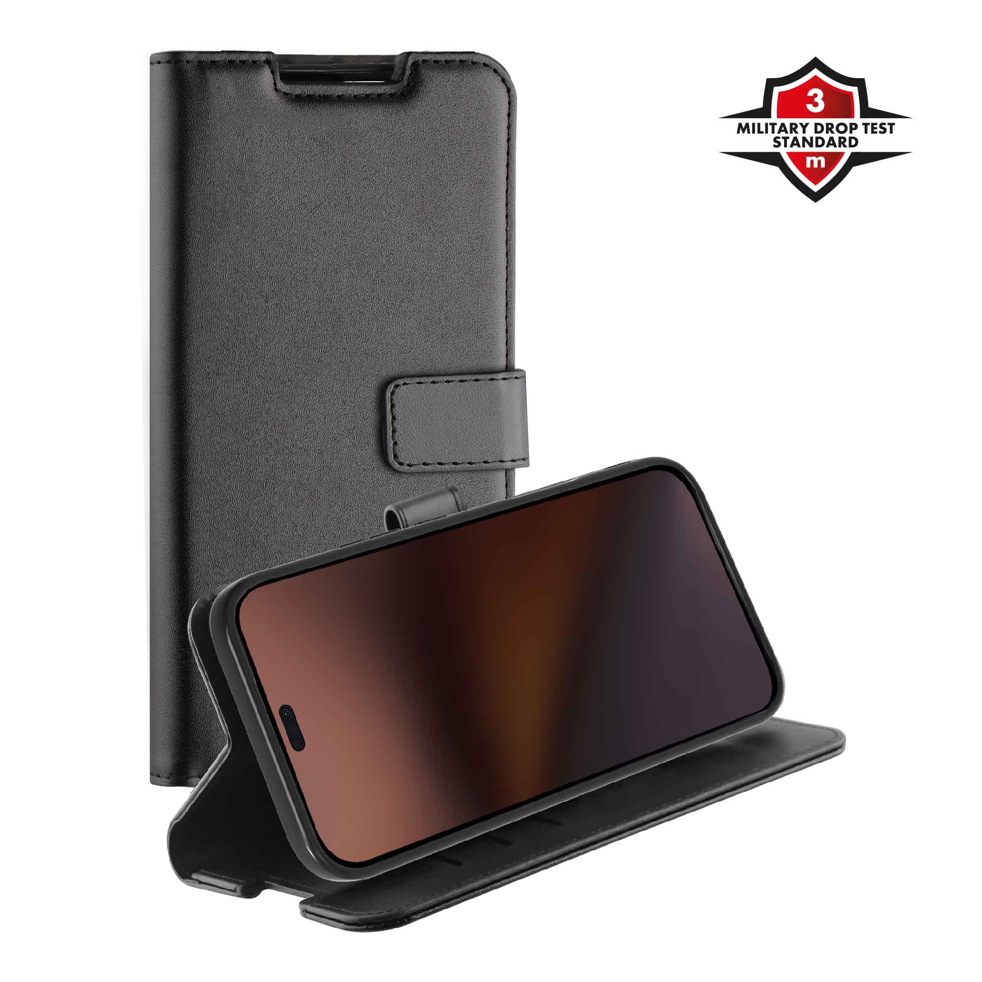 Detta skyddande fodral har tre kreditkortsfack och en stativfunktion för optimal användning i liggande läge. Det skyddar din enhet mot stötar, repor samt fall upp till 3 meter i enlighet med MIL-STD810H-516.8. Det eleganta PU-lädermaterialet har en högkvalitativ känsla och utseende. Den perfekta passformen gör att alla portar och anslutningar är fullt tillgängliga.