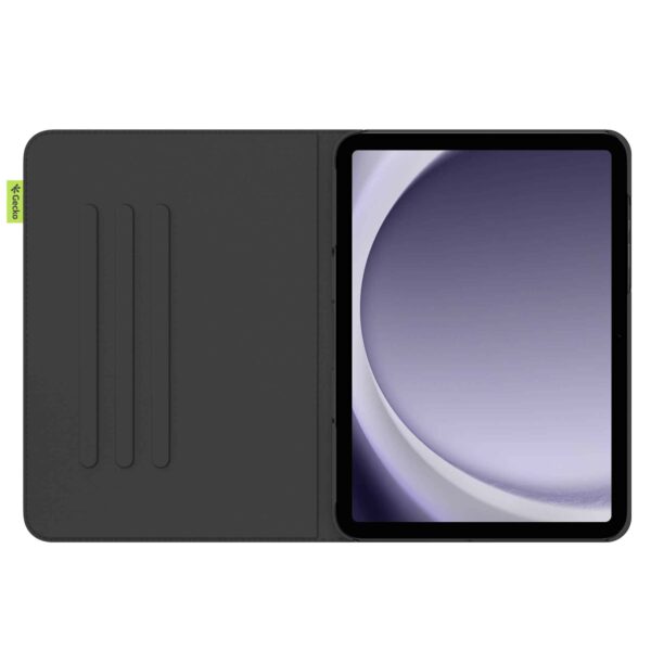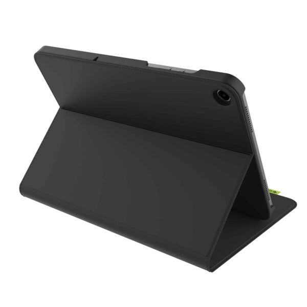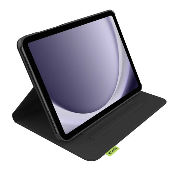 Fodralet kan du enkelt placera i tre olika positioner. Det innebär att du alltid har rätt vinkel för bekväma videosamtal, scrollning eller serietittande. Den smarta designen gör att alla knappar, portar och kameran är lättillgängliga.