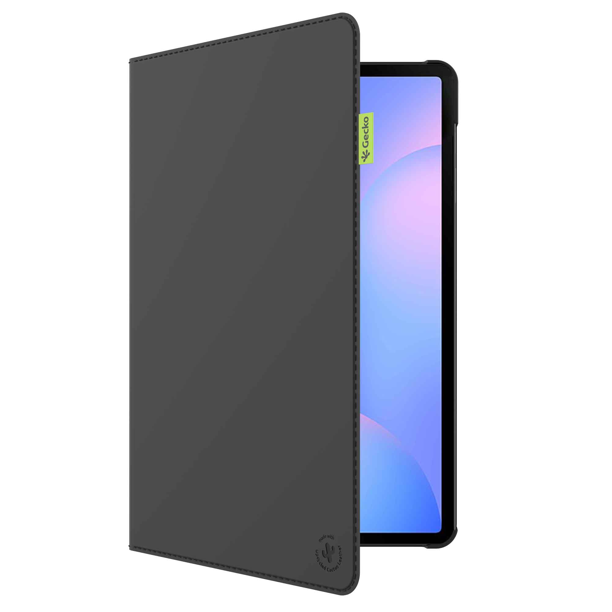 Vi tillverkar detta hållbara fodral av kaktusläder, utan taggar förstås. Cactus Cover är till stor del tillverkat av återvunnet material, så du skyddar inte bara din surfplatta med stil, utan gör också ett medvetet val för miljön. Ett fodral med pålitlig Gecko-kvalitet, med en växtbaserad och hållbar twist.