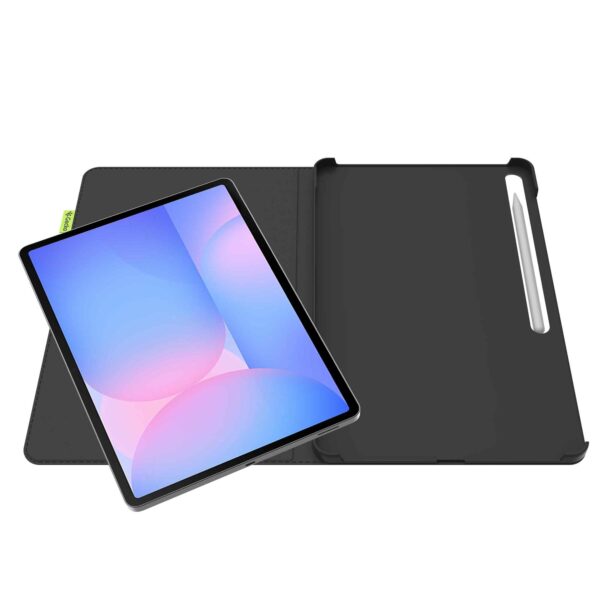 Fodralet kan du enkelt placera i tre olika positioner. Det innebär att du alltid har rätt vinkel för bekväma videosamtal, scrollning eller serietittande. Den smarta designen gör att alla knappar, portar och kameran är lättillgängliga.