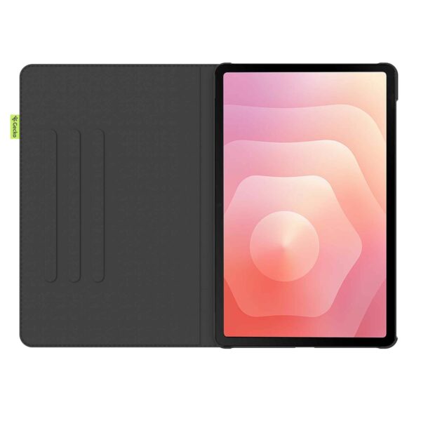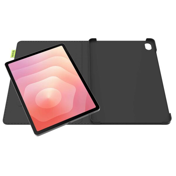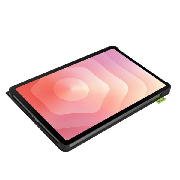 Fodralet kan du enkelt placera i tre olika positioner. Det innebär att du alltid har rätt vinkel för bekväma videosamtal, scrollning eller serietittande. Den smarta designen gör att alla knappar, portar och kameran är lättillgängliga.
