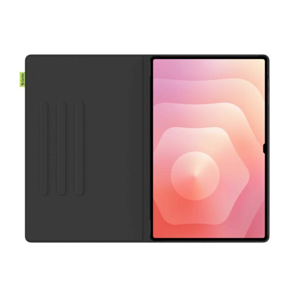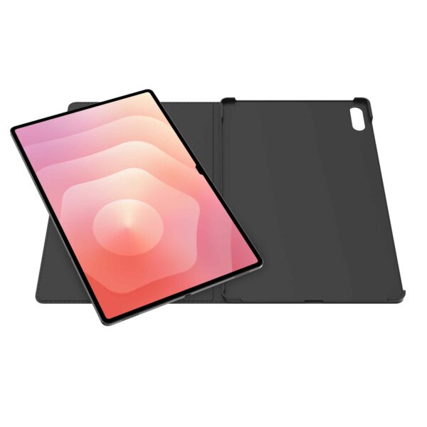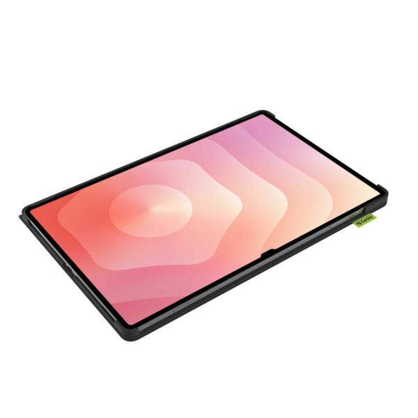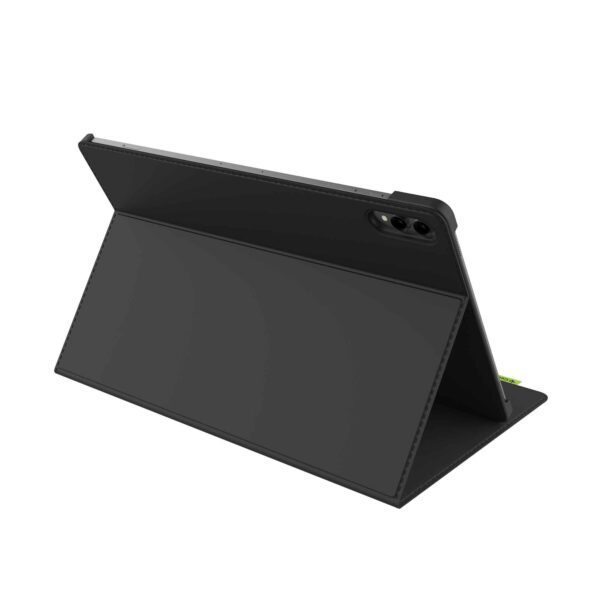 Fodralet kan du enkelt placera i tre olika positioner. Det innebär att du alltid har rätt vinkel för bekväma videosamtal, scrollning eller serietittande. Den smarta designen gör att alla knappar, portar och kameran är lättillgängliga.