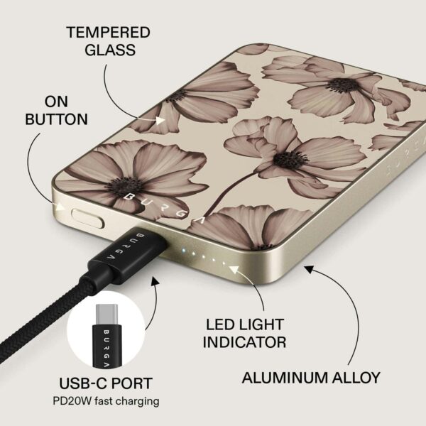 Möt den perfekta blandningen av mode och funktion. Detta eleganta kraftpaket på 5000 mAh håller dina enheter laddade och ger en touch av stil med BURGAs unika, blekningssäkra design. Det är mer än bara en powerbank; det är en statement piece som ger dina enheter ström när som helst, var som helst.