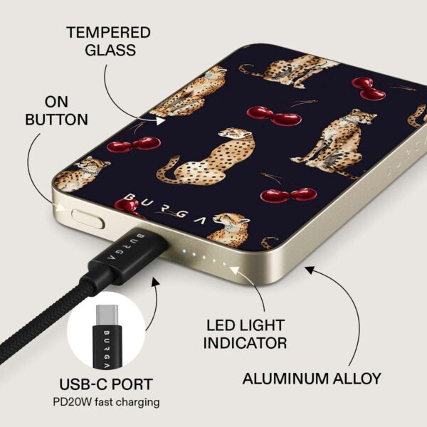 Möt den perfekta blandningen av mode och funktion. Detta eleganta kraftpaket på 5000 mAh håller dina enheter laddade och ger en touch av stil med BURGAs unika, blekningssäkra design. Det är mer än bara en powerbank; det är en statement piece som ger dina enheter ström när som helst, var som helst.