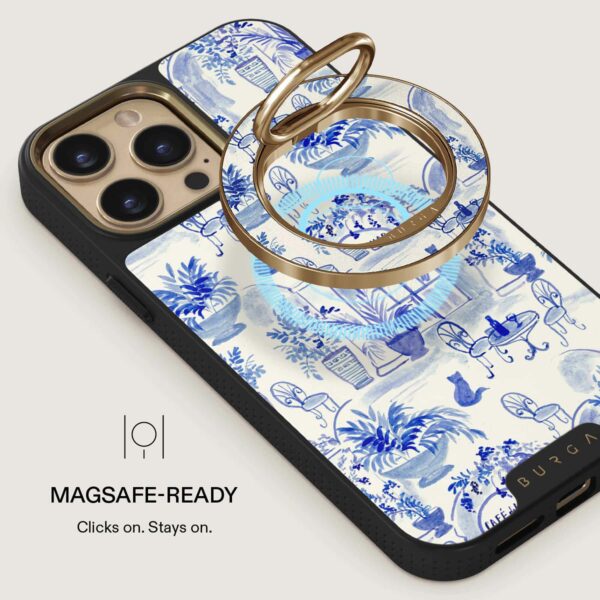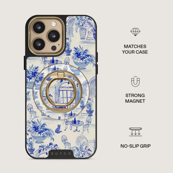 Den här magnetiska mobilringen fäster med ett härligt klick – utan klister, utan krångel. Håll i den när du vill scrolla med en hand, använd den som ett praktiskt stativ när du vill titta handsfree eller som en snygg accessoar som passar perfekt till ditt BURGA-skal.