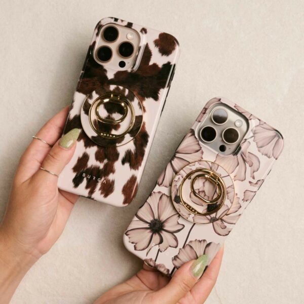 Den här magnetiska mobilringen fäster med ett härligt klick – utan klister, utan krångel. Håll i den när du vill scrolla med en hand, använd den som ett praktiskt stativ när du vill titta handsfree eller som en snygg accessoar som passar perfekt till ditt BURGA-skal.