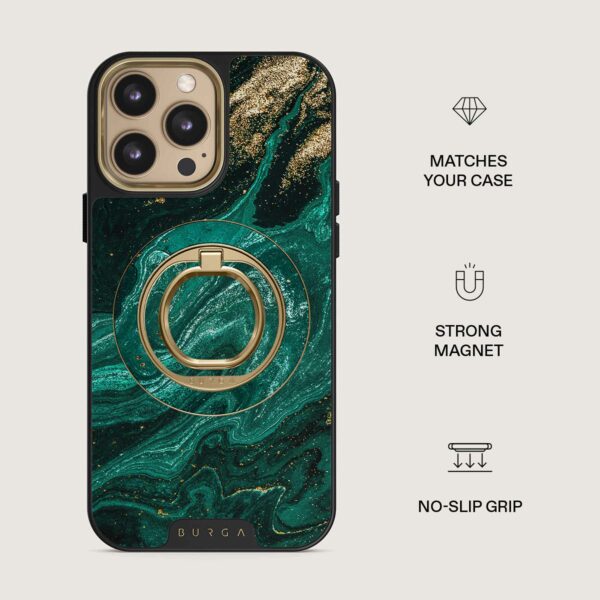 Den här magnetiska mobilringen fäster med ett härligt klick – utan klister, utan krångel. Håll i den när du vill scrolla med en hand, använd den som ett praktiskt stativ när du vill titta handsfree eller som en snygg accessoar som passar perfekt till ditt BURGA-skal.