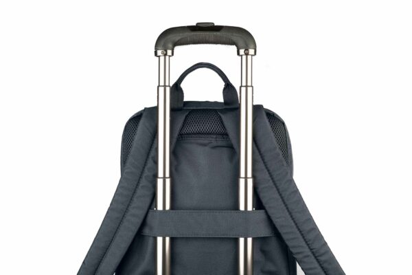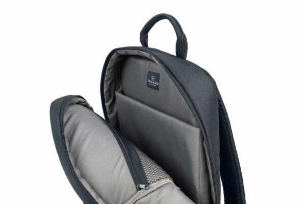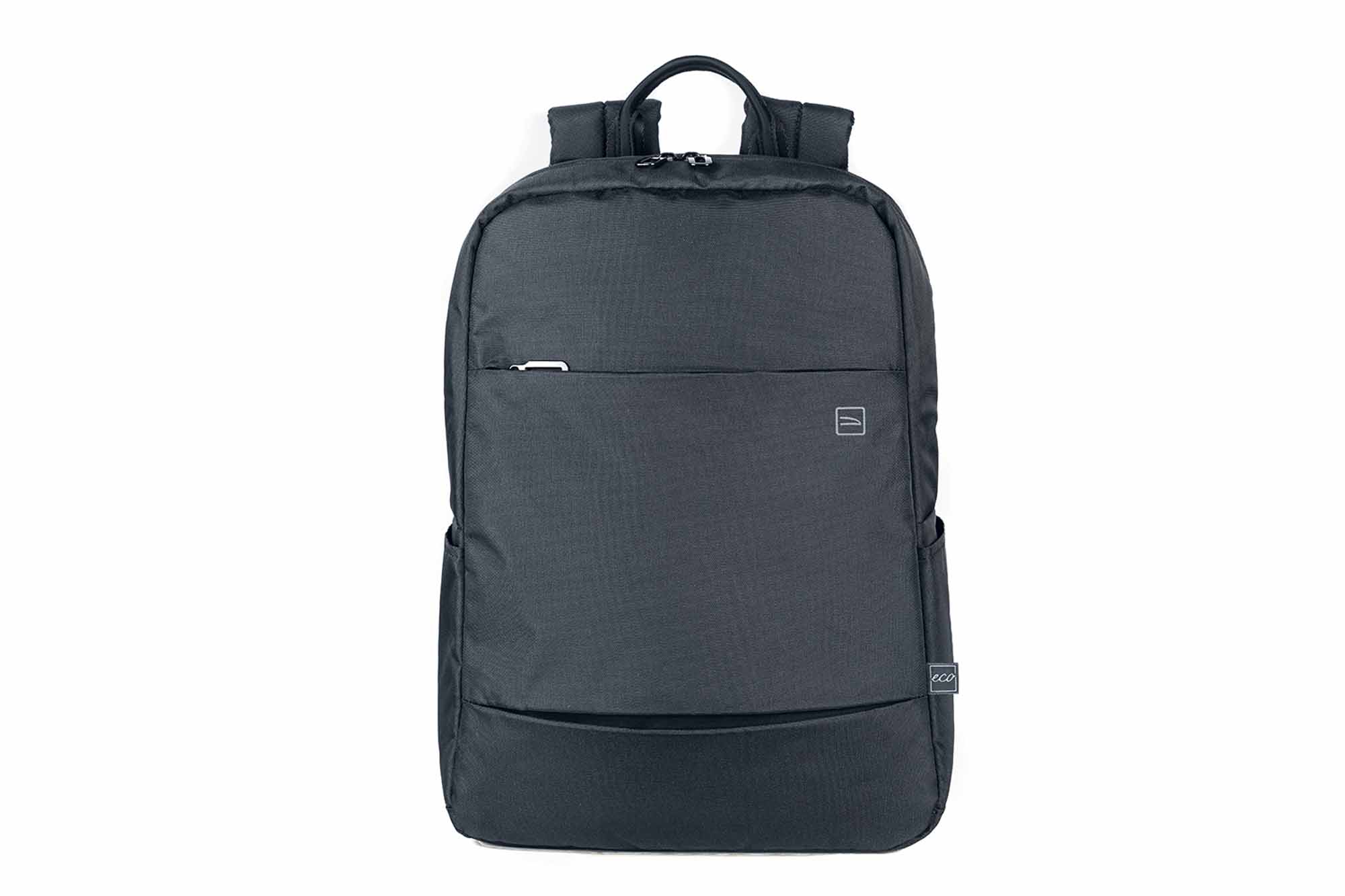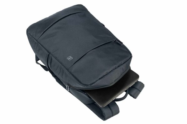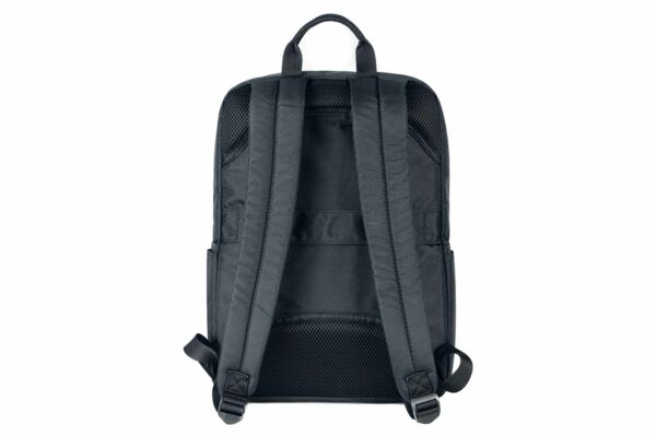Lätt ryggsäck i tyg tillverkat av återvunnen plast med en modern, kompakt design. Perfekt för MacBooks och bärbara datorer upp till 15,6″. De justerbara, vadderade axelremmarna tillsammans med den ergonomiska ryggen och den platta, externa förvaringsfickan på framsidan gör den bekväm och användbar för både arbete och fritid.