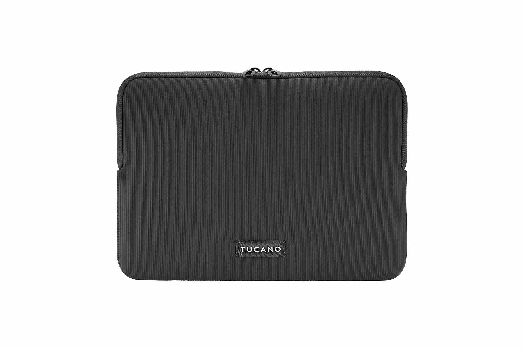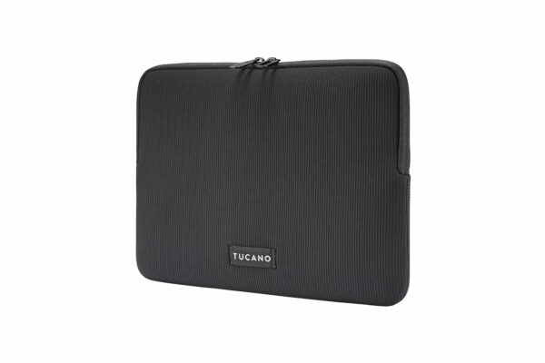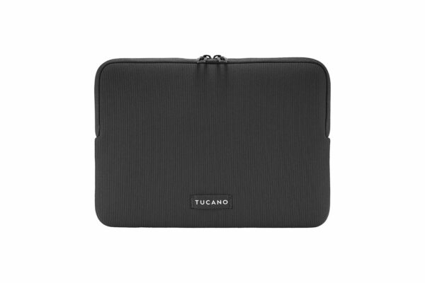 Neoprenfodral med randigt mönster, designat för laptop och MacBook. Den 4 mm tjocka strukturen garanterar utmärkt skydd och behåller samtidigt en ultratunn profil tack vare flatlock-sömmarna. Utrustad med Anti-Slip System®, ett elastiskt inlägg som förhindrar repor och glidning. Den inre skyddskanten ger extra skydd, medan dragkedjan med dubbla dragtappar underlättar öppningen. Logotypen, tryckt på en mittsydd etikett, tillför en distinkt design och personlighet. Tillverkad delvis av återvunnen plast.