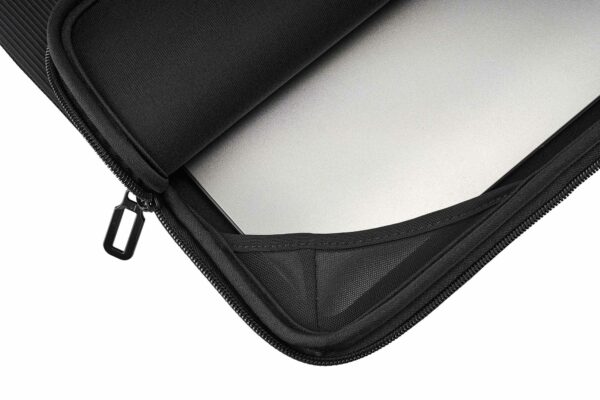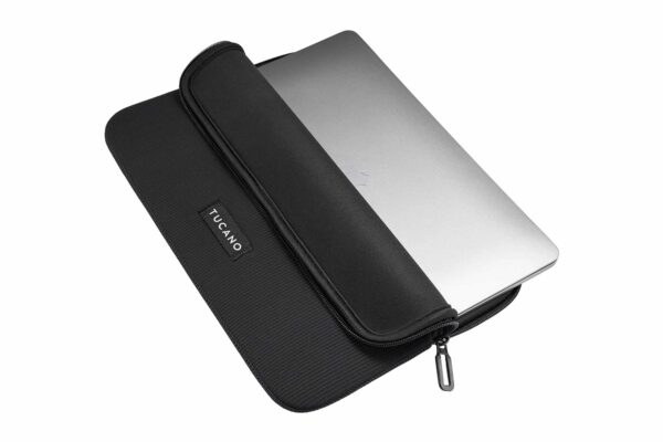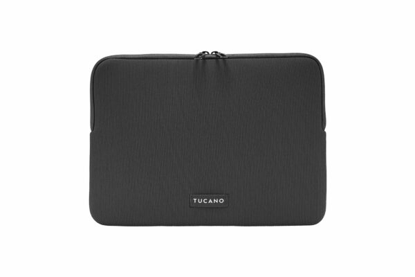 Neoprenfodral med randigt mönster, designat för laptop och MacBook. Den 4 mm tjocka strukturen garanterar utmärkt skydd och behåller samtidigt en ultratunn profil tack vare flatlock-sömmarna. Utrustad med Anti-Slip System®, ett elastiskt inlägg som förhindrar repor och glidning. Den inre skyddskanten ger extra skydd, medan dragkedjan med dubbla dragtappar underlättar öppningen. Logotypen, tryckt på en mittsydd etikett, tillför en distinkt design och personlighet. Tillverkad delvis av återvunnen plast.