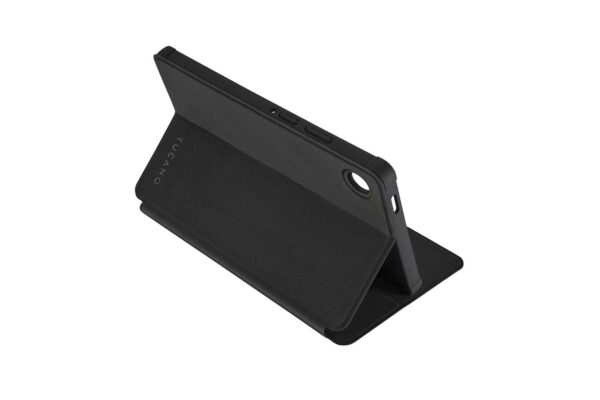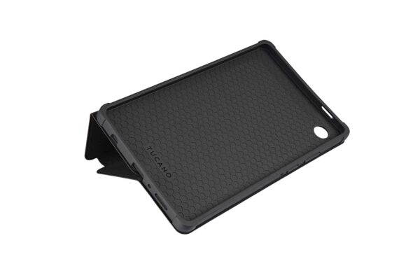 Miljövänligt fodral för Samsung Galaxy Tab, i nylonliknande PU, tillverkat av återvunnen plast. Insidan är fodrad med ett mjukt, reptåligt material och det inre bakre skalet, som har en öppning för kameran, är tillverkat av mjukt, skyddande TPU. Frontlocket kan också förvandlas till ett praktiskt stativ, perfekt för att skriva och läsa. Det finns ett externt fack för S Pen. Tre 500 ml plastflaskor har återvunnits för att tillverka detta fodral.