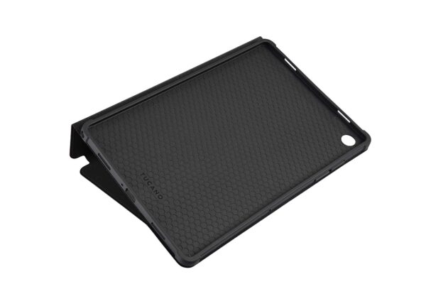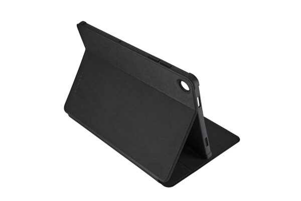 Miljövänligt fodral för Samsung Galaxy Tab, i nylonliknande PU, tillverkat av återvunnen plast. Insidan är fodrad med ett mjukt, reptåligt material och det inre bakre skalet, som har en öppning för kameran, är tillverkat av mjukt, skyddande TPU. Frontlocket kan också förvandlas till ett praktiskt stativ, perfekt för att skriva och läsa. Det finns ett externt fack för S Pen. Tre 500 ml plastflaskor har återvunnits för att tillverka detta fodral.