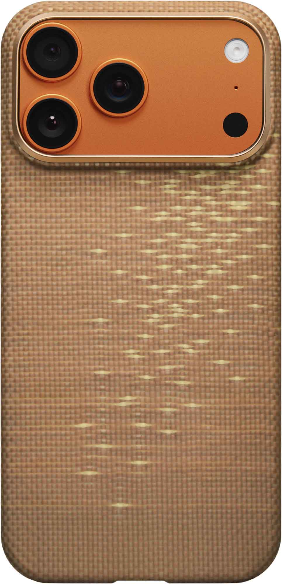 Ett fodral som är mindre än 1 mm tjockt skyddar kameraknappen med aramidfiber, medan ett dolt kapacitivt lager gör att du kan trycka och svepa utan ansträngning. Det är sömlöst integrerat och bevarar aramidstrukturen för precis och responsiv kontroll.