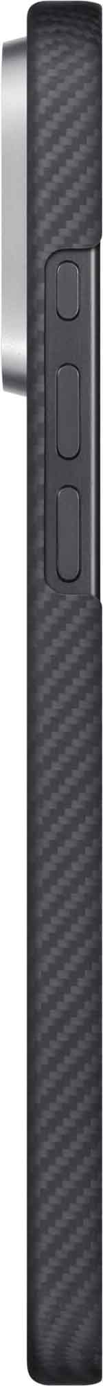 Ett fodral som är mindre än 1 mm tjockt skyddar kameraknappen med aramidfiber, medan ett dolt kapacitivt lager gör att du kan trycka och svepa utan ansträngning. Det är sömlöst integrerat och bevarar aramidstrukturen för precis och responsiv kontroll.
