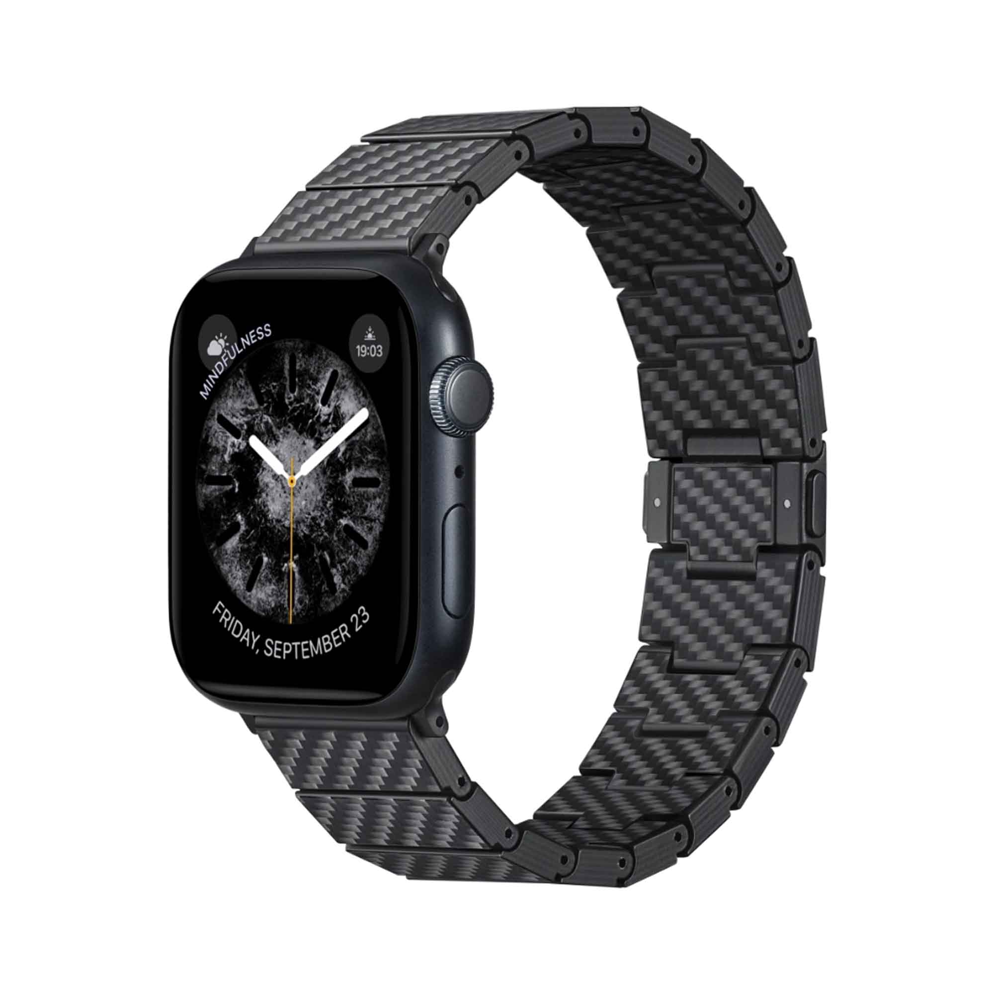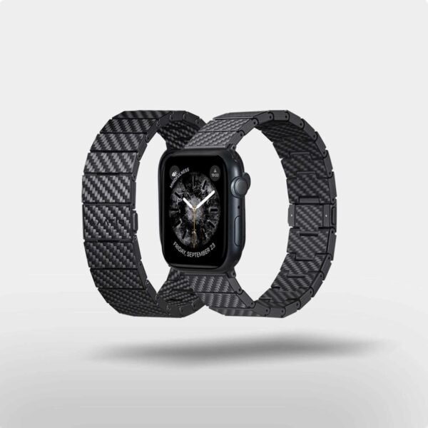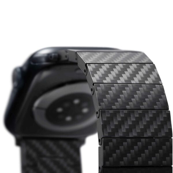 Världens första klockarmband med länkar av 100 % kolfiber som är kompatibelt med alla Apple Watch-modeller, inklusive Series 11-1, SE3/SE och Ultra 3/Ultra 2/Ultra.