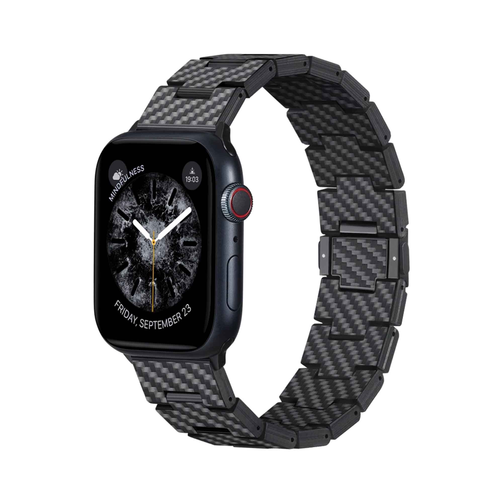 Världens första klockarmband med länkar av 100 % kolfiber som är kompatibelt med alla Apple Watch-modeller, inklusive Series 11-1, SE3/SE och Ultra 3/Ultra 2/Ultra.