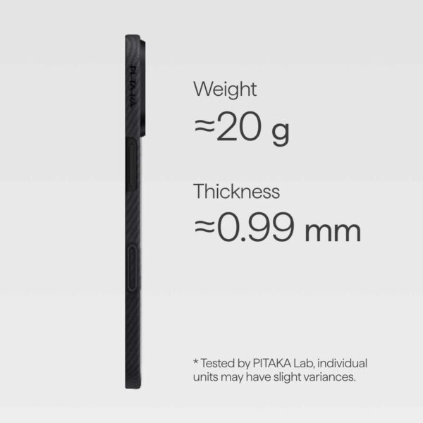 Ett fodral som är mindre än 1 mm tjockt skyddar kameraknappen med aramidfiber, medan ett dolt kapacitivt lager gör att du kan trycka och svepa utan ansträngning. Det är sömlöst integrerat och bevarar aramidstrukturen för precis och responsiv kontroll.