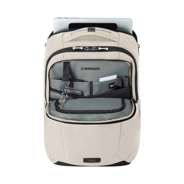 Optimerad prestanda och en praktisk estetik smälter samman och skapar denna oumbärliga ryggsäck för den upptagna yrkesmannen. Den är tillräckligt sofistikerad för styrelserummet, men ändå tillräckligt tålig för daglig användning, och har vadderade fack för din surfplatta och bärbara dator. Den inre SmartOrg-panelen håller ordning på dina viktigaste saker, och unika dolda sidfickor förvarar din utrustning säkert utan att ta upp extra plats. Vattentåliga dragkedjor och ett säkerhetsspänne av typen S/R gör jobbet.
