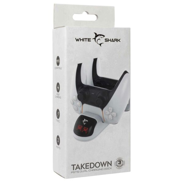Förbättra din spelupplevelse med en laddningsstation för handkontroller från TAKEDOWN. Ladda dina PS5-handkontroller enkelt via Type-C-gränssnittet. Den kompakta designen på 60 x 36 x 167 mm smälter in perfekt i din uppsättning i svart/vitt. TAKEDOWN är tillverkad av hållbar plast och håller dig laddad.