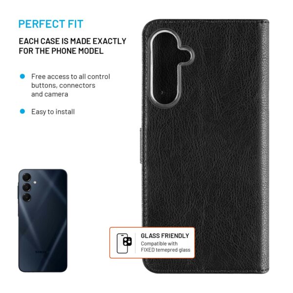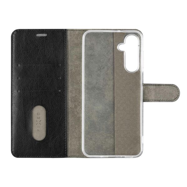 Den nya eleganta designen på FIXED Opus plånboksfodral skyddar din smartphone från alla vardagens faror. Det är utformad exakt för den aktuella telefonmodellen och täcker alla delar, inklusive skärmen.
