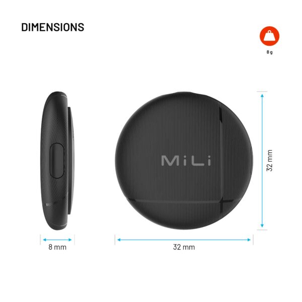 Strömförsörjningen sker via ett utbytbart CR2032-batteri med en livslängd på upp till 12 månader, så du behöver inte oroa dig för att ladda det ofta. Lokaliserarens lätta och kompakta kropp är tillverkad av slitstark plast som tål normal hantering. Samtidigt är den diskret och kan placeras var som helst utan att vara i vägen.