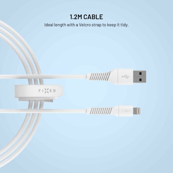 FIXED-data- och laddningskabeln med USB-A- och Lightning-kontakter är ett pålitligt tillbehör för din Apple-enhet. Den används för att ladda en iPhone eller iPad med Lightning-kontakt med maximal hastighet, samtidigt som den hanterar all dataöverföring med en hastighet på 480 Mbps.