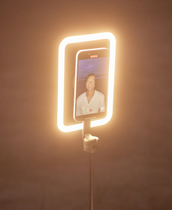 Vidare är designen magnetisk och enkel att fästa – snap-on-systemet ger en säker och smidig anslutning. Du kan dessutom snabbt vända lampan för att växla mellan framåt- och bakåtbelysning, vilket gör att ditt innehåll alltid lyser med både klarhet och precision.