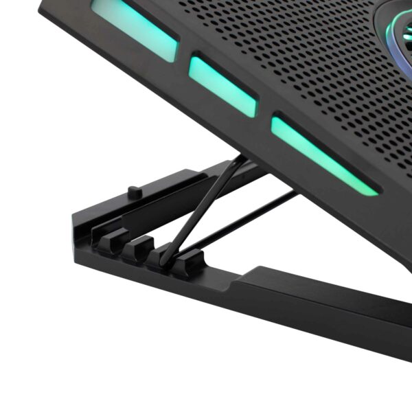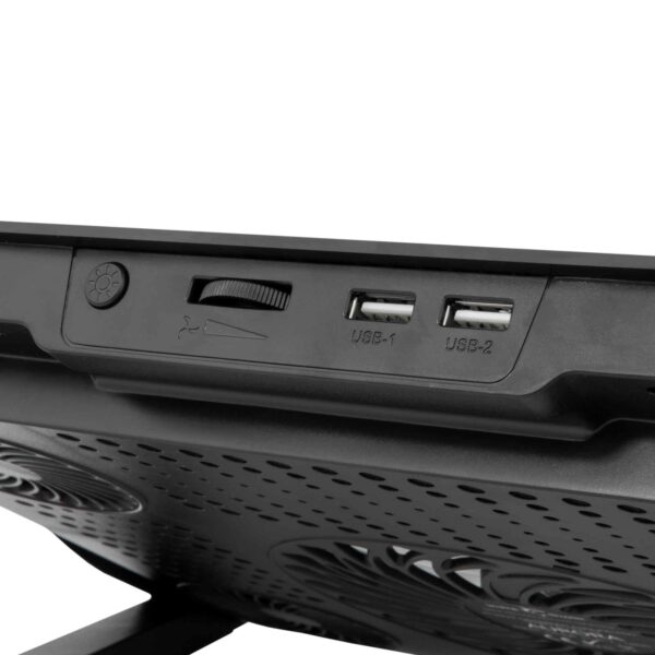 Förbättra din upplevelse med den eleganta aluminiumdesignen, anpassad för skärmar upp till 17,3 tum. De tysta fläktarna har en hastighet på 1400 till 2500 varv per minut och producerar endast 5-15 dBA ljud. Håll anslutningen med den inbyggda USB-hubben och njut av smidig multitasking. Med 6 justerbara vinklar kan du hitta din ergonomiska sweet spot.