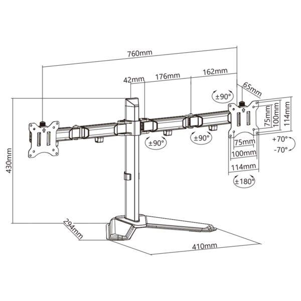 Förbättra din installation med detta skrivbordsväggfäste. Med en armräckvidd på 380 mm är det utformat för skärmar mellan 17 och 32 tum. Sväng och rotera enkelt med en flexibilitet på +90° till -90°. Tillverkat av stål och plast, med en elegant grå finish. VESA-kompatibel, med avtagbar platta och kabelhantering.