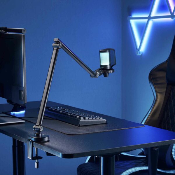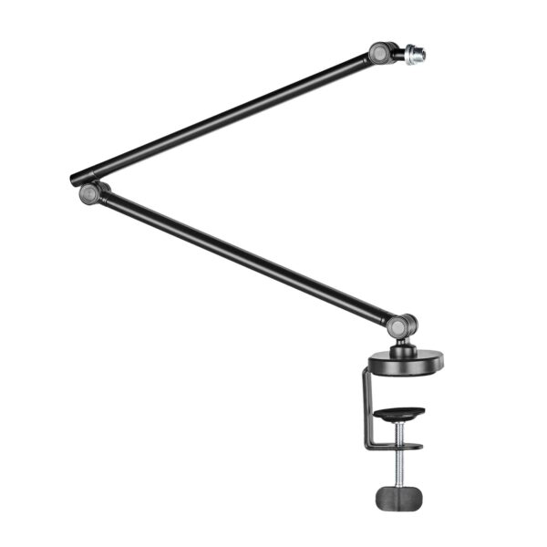 Det är tillverkat av stål, plast och aluminium och är ett elegant kraftpaket i svart/grått med pulverlackering. Med justerbar höjd (0–812 mm) och olika mikrofonfästen är det din mångsidiga ljudkompanjon. Enkel klämmontering och en maximal belastning på 1 kg gör det till ett måste för kreatörer.