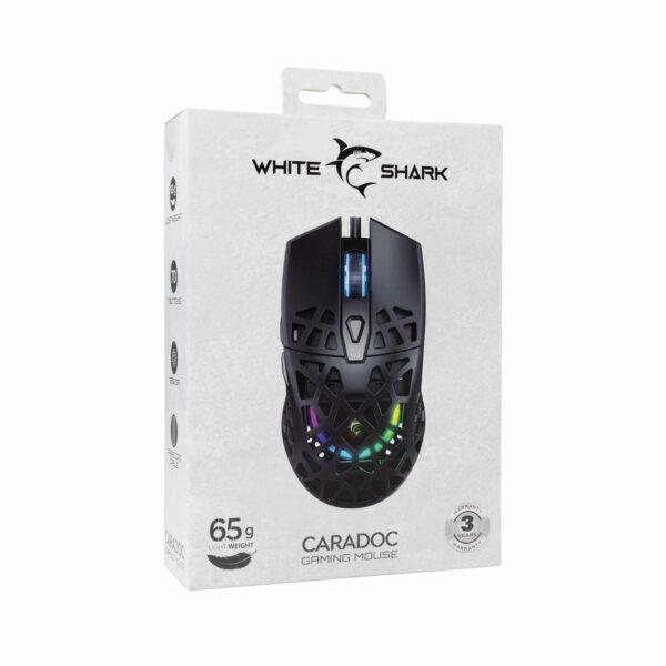 Den har en lätt design, 7200 DPI-precision, RGB-belysning och en paracord-kabel för smidiga rörelser, och är byggd för prestanda och stil. Med en livslängd på 10 miljoner klick och anpassningsbar programvara är CARADOC din ultimata spelkompis.