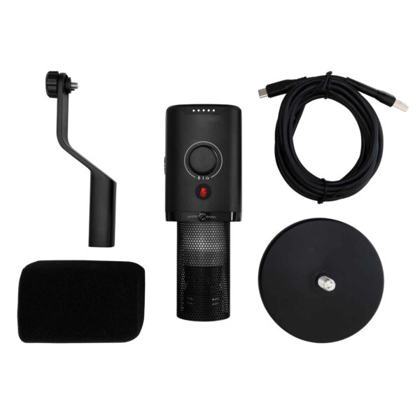 Med ett kardioidupptagningsmönster, 48 kHz/24-bitars kvalitet och ett inbyggt popfilter garanterar den kristallklart ljud. Perfekt för streaming, podcasting eller inspelning, och med sitt bärbara stativ och 2,5 m långa kabel är den idealisk för kreatörer som är mycket på resande fot.
