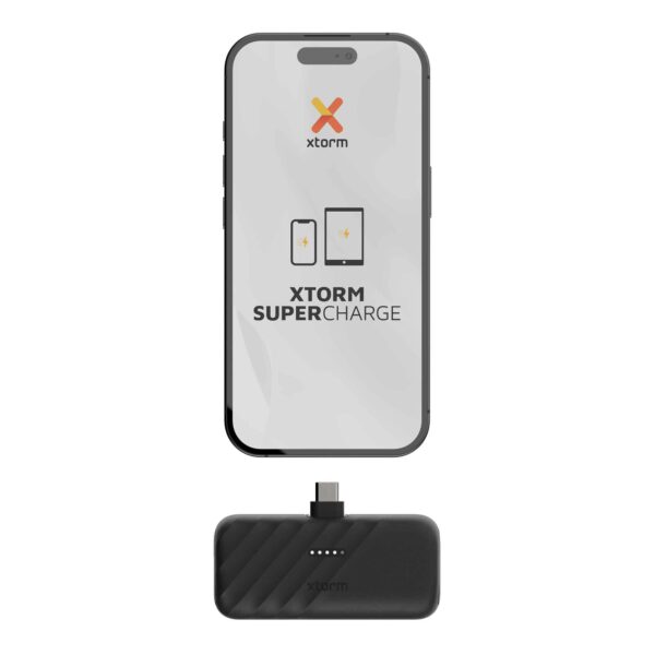 Fäll ut USB-C-kontakten, anslut den till din enhet och PowerShot börjar omedelbart snabbladdas. Med Xtorm 20 W SuperCharge tar det bara 15 minuter att ge din smartphone 25 % extra kraft. Det finns en andra USB-C-port på sidan som laddar PowerShot fullt på 1,5 timmar med 18 W effekt.