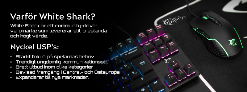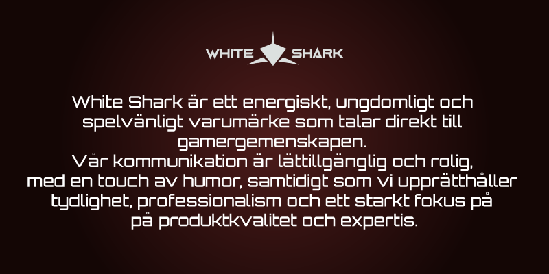White Shark stod som en symbol för ren kärlek till spel och skoj. Men i takt med att vi utvecklas börjar vi uppskatta inte bara vad som är bra för oss, utan också för hela världen omkring oss. Det fick oss att tänka på tekniken och alla underverk som den har gett oss, inklusive den otroliga spelvärlden. White Shark håller på att utvecklas till en symbol för att ta hand om världen omkring oss, samtidigt som vi inte får glömma att ha roligt under tiden. Det är anledningen till "We Care".